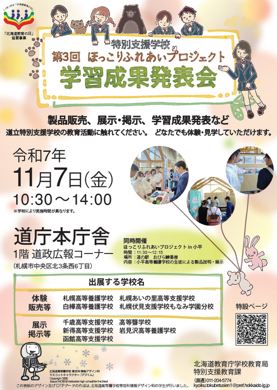 北海道教育委員会では、道立特別支援学校の教育活動の成果を広く道民の皆様に周知し、今後の教育活動の充実に資することを目的に、「ほっこりふれあいプロジェクト」を実施しています。