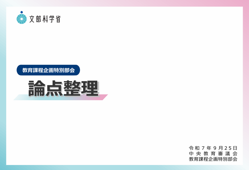 これまでの議論の成果として、学校現場の現状や課題を体系的に整理したうえで、次期学習指導要領に向けた基本的な考え方等を整理した「論点整理」を公表しています。