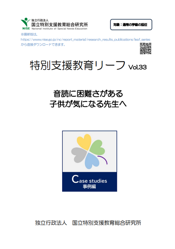 今回の「特別支援教育リーフVol.33」では、「音読に困難さがある子供が気になる先生へ」を特集しております。事例をもとに、「子供の音読の様子を把握するためのポイント」や「音読に困難さがある子供への配慮」などについて紹介しています。