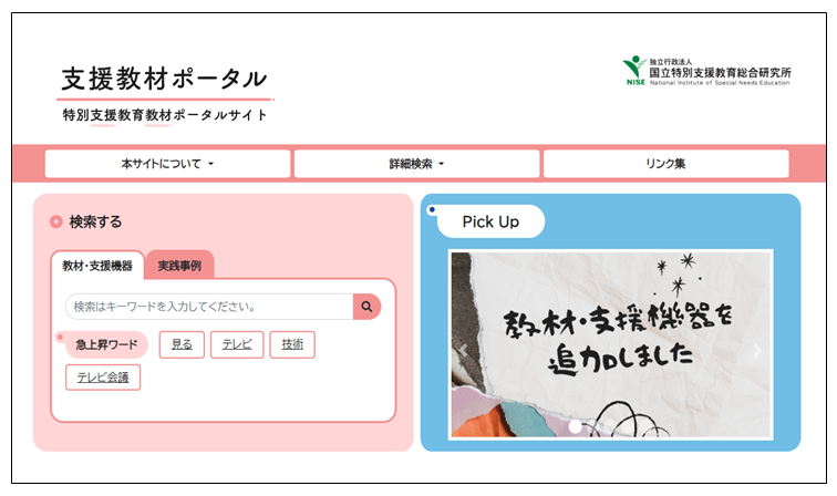 【R8.1.15(木)更新】 国立特別支援教育総合研究所(NISE)が作成するWebページに、 「支援教材ポータル」というページがあるのをご存知でしょうか?