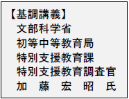 小学校、中学校、高等学校等の特別支援教育コーディネーター、近隣地域の学校の支援を担っている特別支援学校の特別支援教育コーディネーター | 小学校、中学校、高等学校等における校内支援体制の中核を担っている特別支援教育コーディネーターや、近隣地域の学校の支援を担っている特別支援学校のコーディネーター等を対象に、校内支援の充実に向けた組織的な取組や特別支援教育コーディネーターの役割についての研修を行い、通常の学級の児童生徒への基礎的環境整備や個別の支援の充実を図る。 |